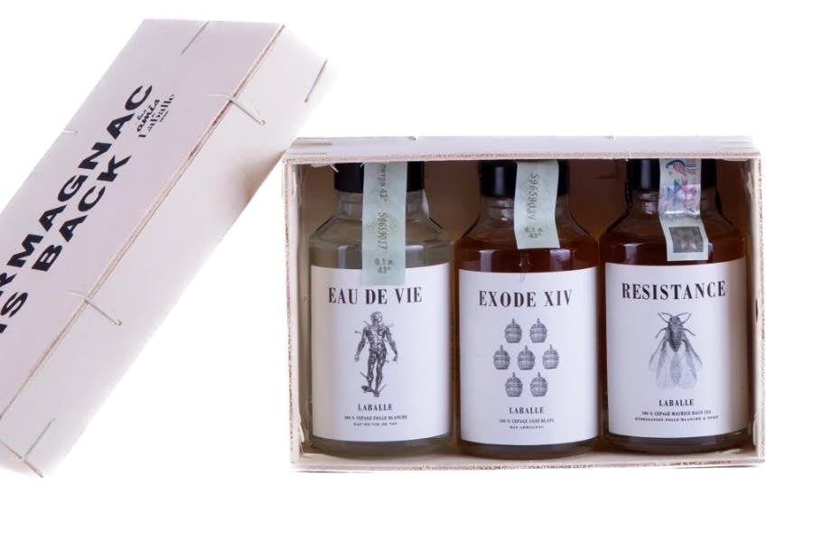 RÉSISTANCE、EXODE XIV、EAU DE VIE、計3本のセットです。アルマニャックとして使用が認められている10品種の葡萄のうち、バコ、ユニブラン、フォルブランシュを、それぞれ単一品種のみで仕込んだモノセパージュシリーズ。葡萄3品種の個性の違いを飲み比べて頂けます。